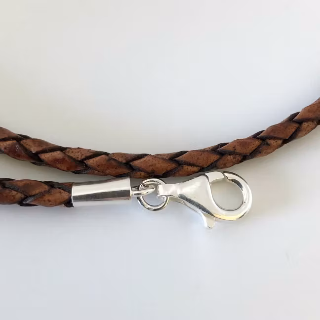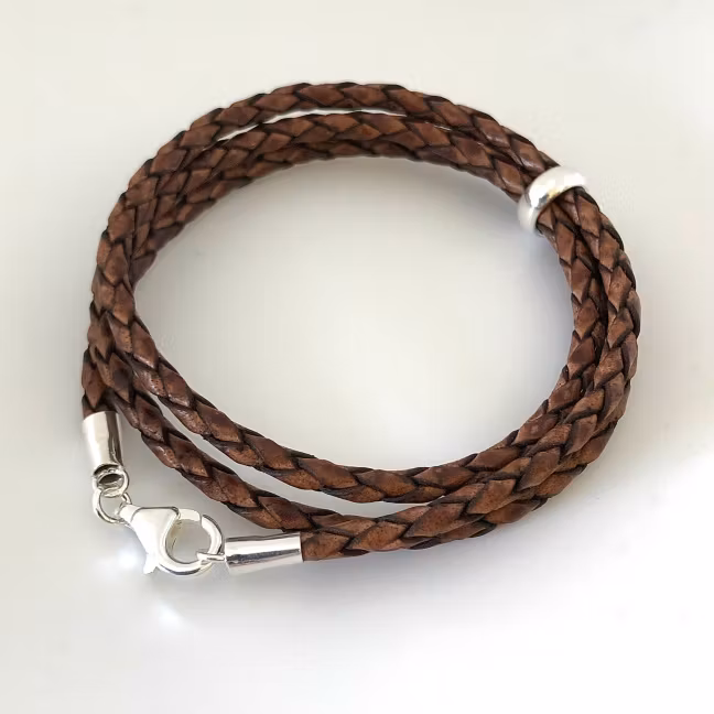 3 mm, tredubbelt flätat brunt armband med silverdelar