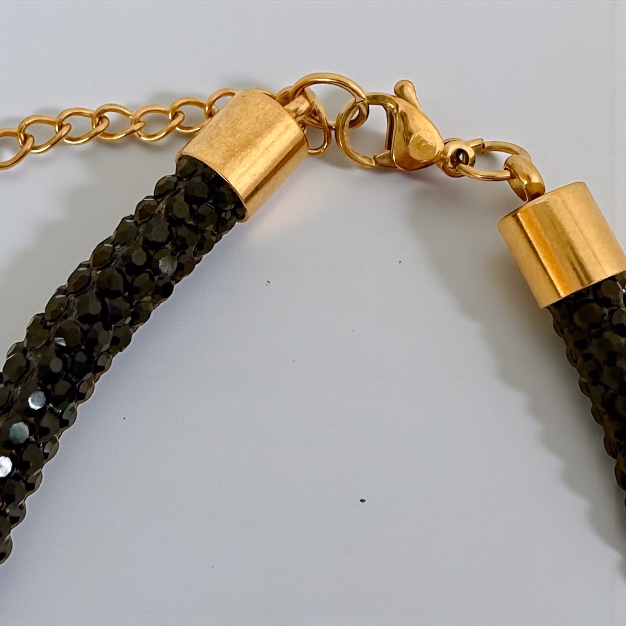 Knut - Svart armband I lager 249 kr Lägg i korgen Artikelnummer: A11-1 Svart armband med knut från By Odahl. Små, små svarta kristaller omger hela armbandet och avslutas med guldfärgade dobbar och förlängningskedja. All metall är nickelfri.Längd: 19,5 cm + förlängningskedja 5 cmBredd: 5 mmLås: karbinhake
