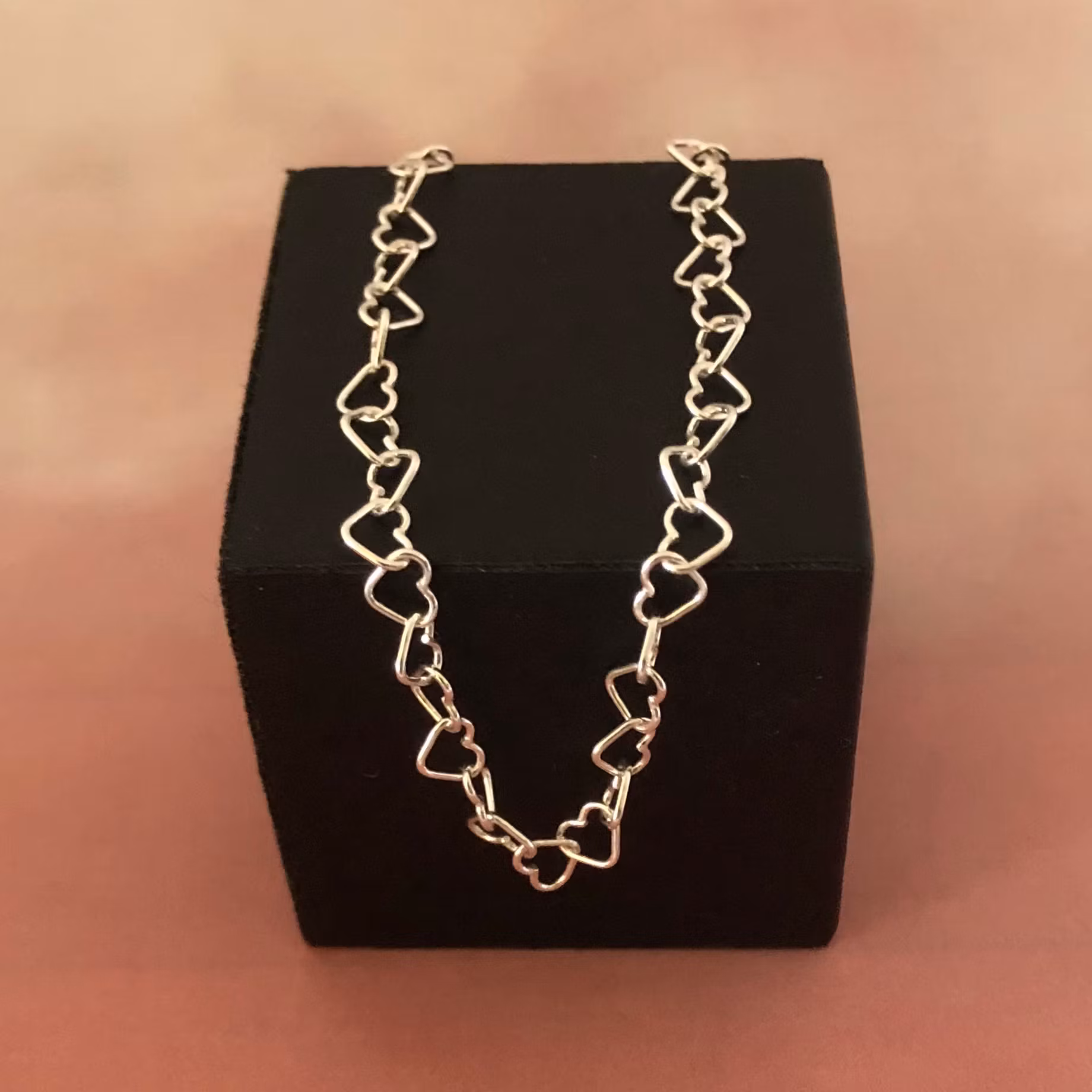 Fotlänk med små hjärtan i silver I lager 249 kr Längd 25 cm 30 cm Lägg i korgen Artikelnummer: Hjärtan 5 mm Fotlänk Fin fotlänk med små silverhjärtan. Allt i äkta silver.Bredd fotlänk: 4 mmFinns i längderna:25 cm (vanligast) 249.-30 cm (för en kraftigare vrist) 269.-Finns även som armband och halsband.