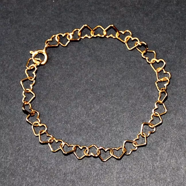 Snygg fotlänk med kedja av hjärtan. Hela fotlänken är helt i silver med guldförgyllning.