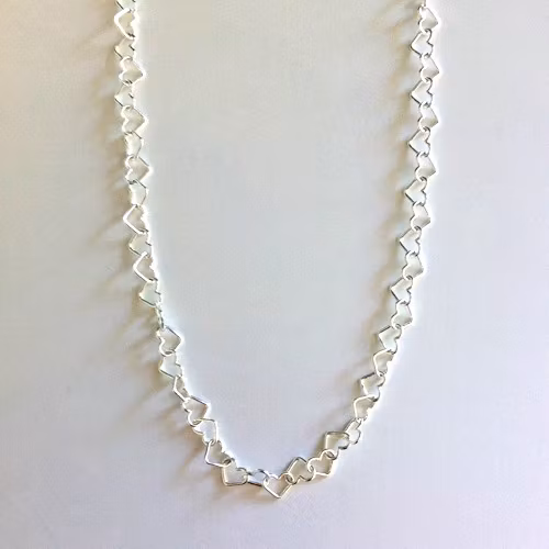 Silverhalsband med små hjärtan - 70 cm I lager 498 kr Lägg i korgen Artikelnummer: HJ6 70 cm Snyggt halsband med kedja av hjärtan i äkta silver.Halsbandets bredd: 4 mmFinns även som fotlänk och armband.Längd: 70 cmRinglås