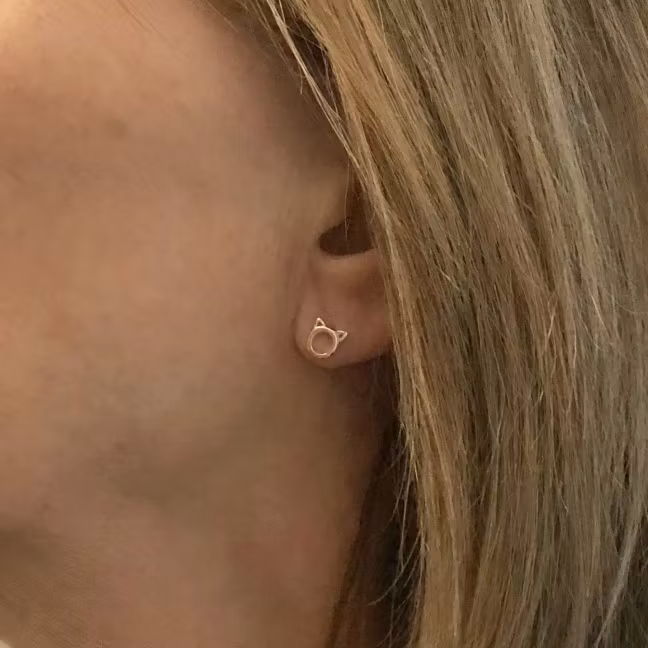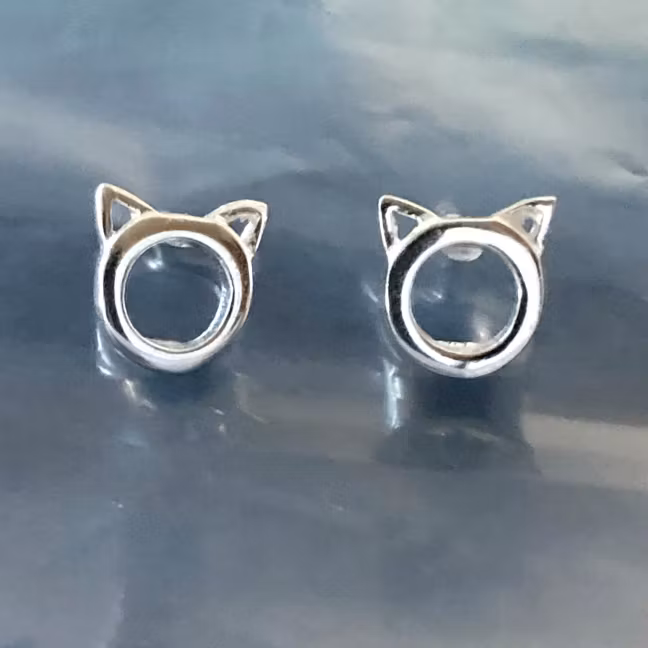 Små söta kattöron - Silverörhängen 98 kr Just nu är varan slut i lager Artikelnummer: 1068-1511 Stilrena, enkla och fina örhängen med kattöron. Örhängena är gjorda i silver. Ytan är blank och silvervit. Mörka områden på fotona är blänk ifrån omgivningen.Bredd: 6 mmÖrhängena har stift och ploppar