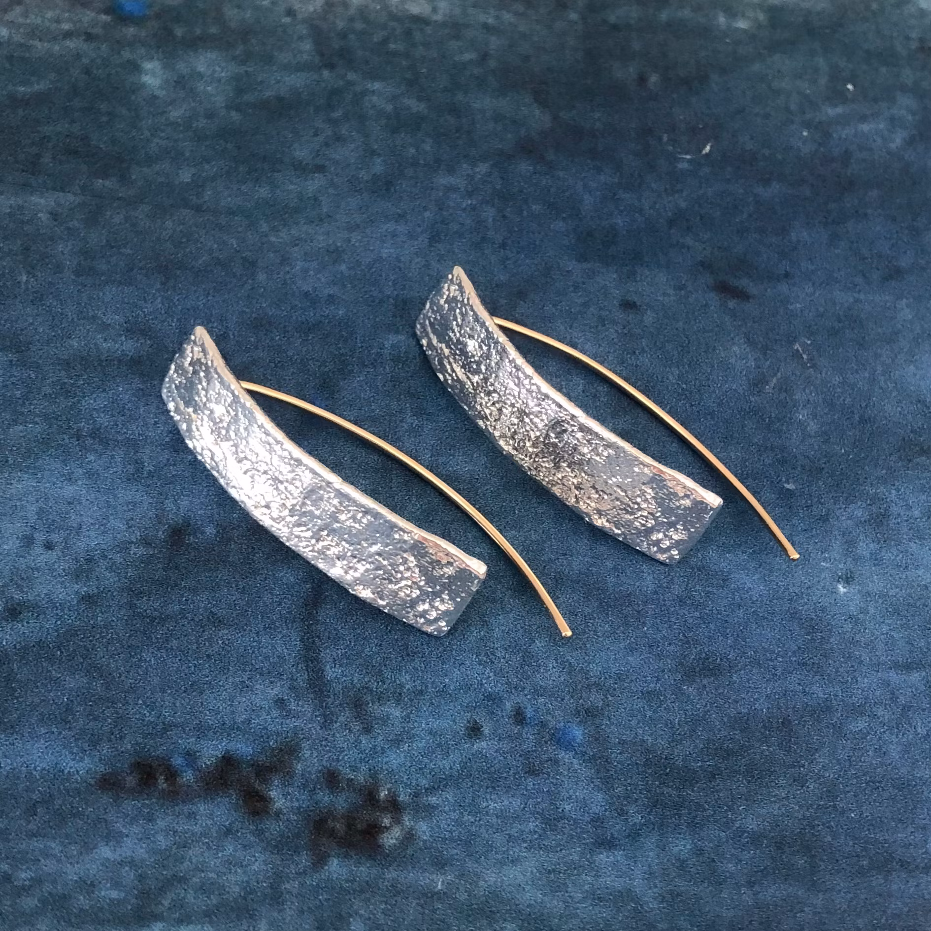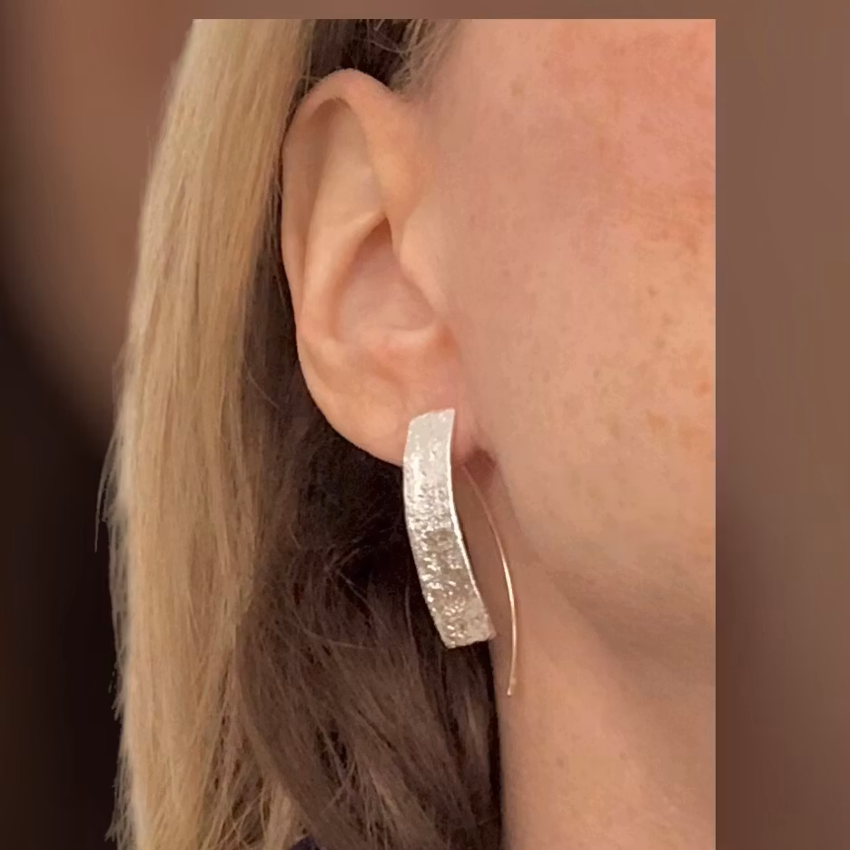 Mycket snygga silverörhängen i stilfull design. Svagt välvda med fint granulerad yta. Örhängeskrokarna är gjorda i guldpläterat silver.