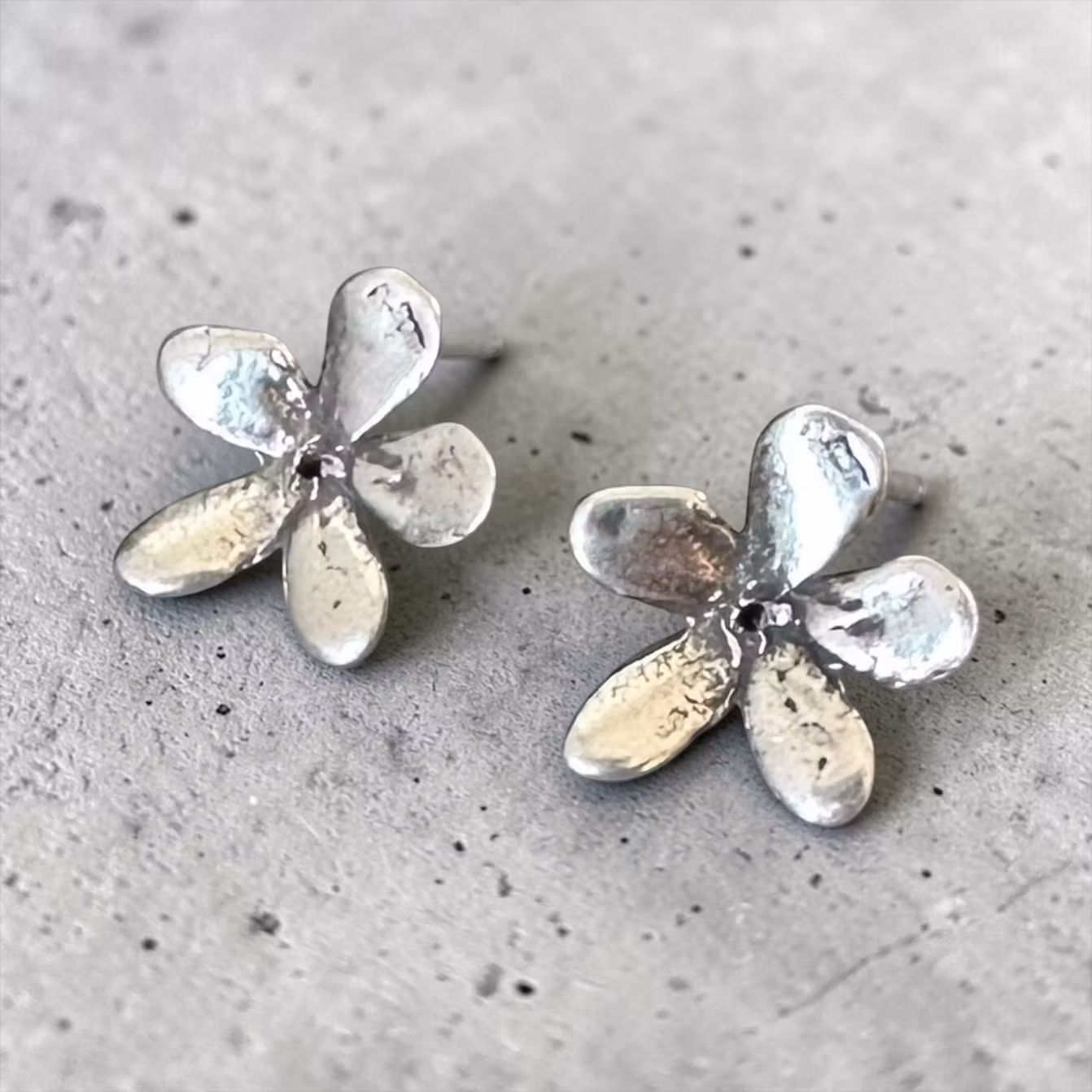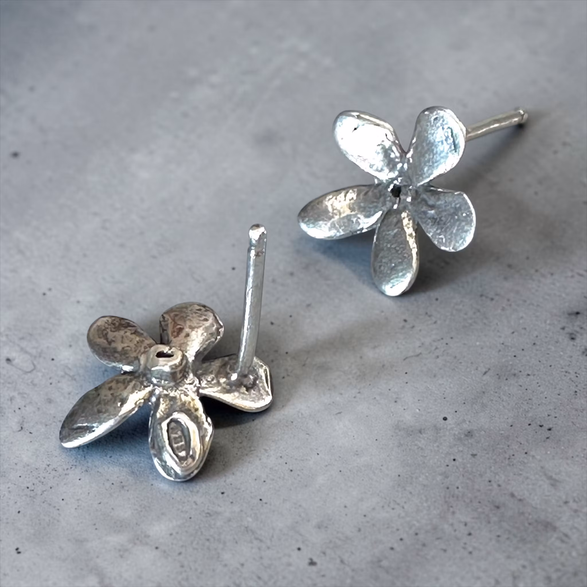 Perla - Blommor i rå design I lager 279 kr Lägg i korgen Artikelnummer: DE0670 Snygga silverörhängen i hög kvalitet med blommor i lite råare design. Örhängena är lätt oxiderade och har stift som sitter på ett av blombladen. Bredd blomma: 1,1 cmLåsploppar i silver