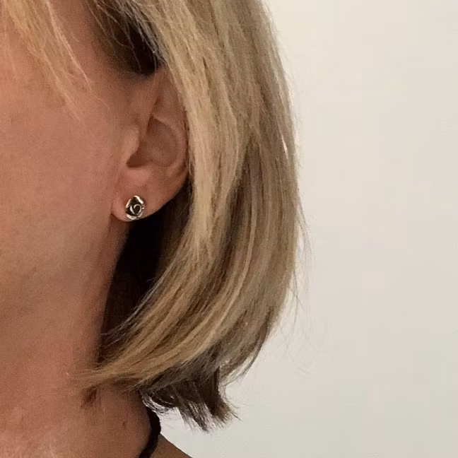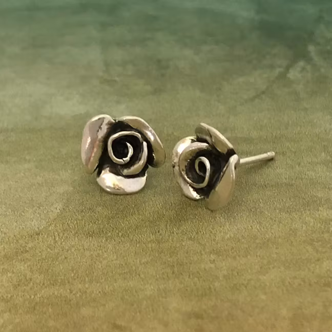 Rosemary - Silverörhängen 159 kr Just nu är varan slut i lager Artikelnummer: E6303 Silverörhängen med små vackra rosor. Lätt oxiderade. Diameter: 1 cmÖrhängena har stift och låsploppar.