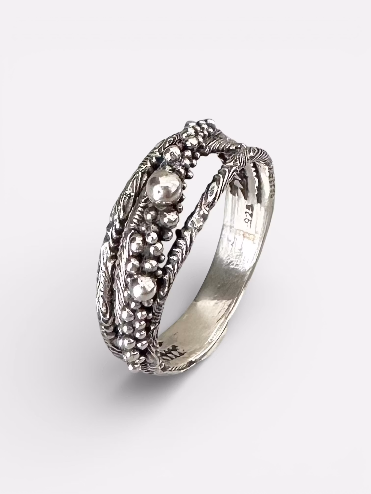 Riktigt snygg och detaljerad ring i råare design. Ringen är gjord helt i silver med lätt oxidering. Matchar den smalare ringen Samantha som du hittar HÄR