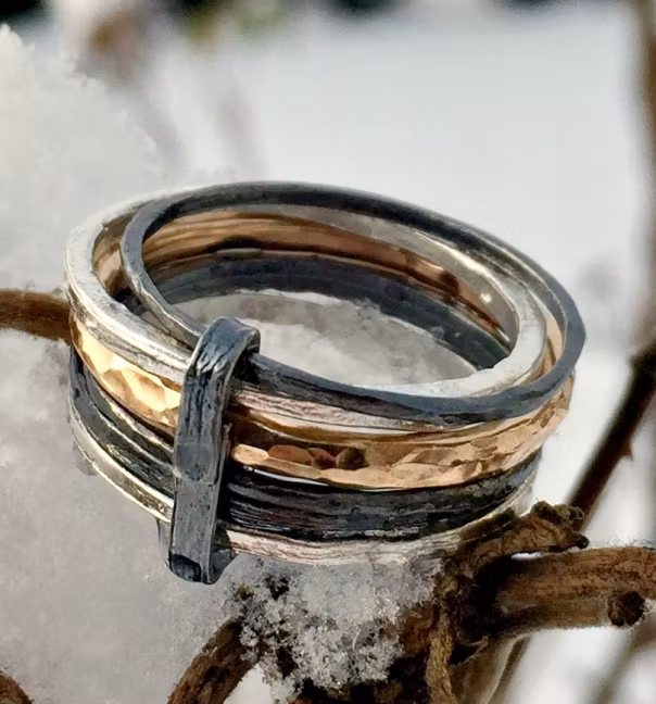 * Tre ringar i silver med tunt lager svartoxid.